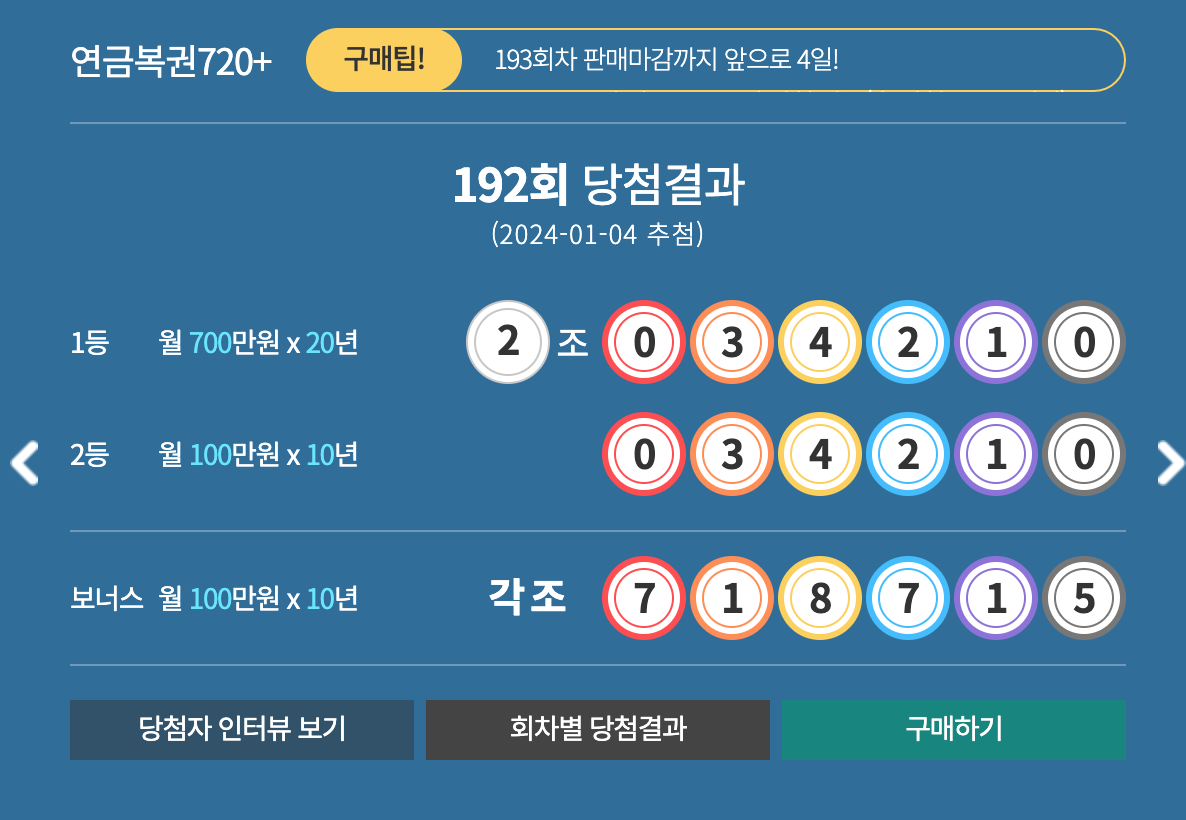 사이트에 보면 역대 로또 당첨자 인터뷰가 있습니다. 해당 후기를 보면 당첨된 방법이나 좋은 팁들이 많으니 확인해 보시고 해당 방법으로 구매하시는 것이 당첨될 확률을 높이는 좋은 방법입니다. 꼭 확인해 보시고 당첨되셔서 인생역전을 이루시길 바랍니다.