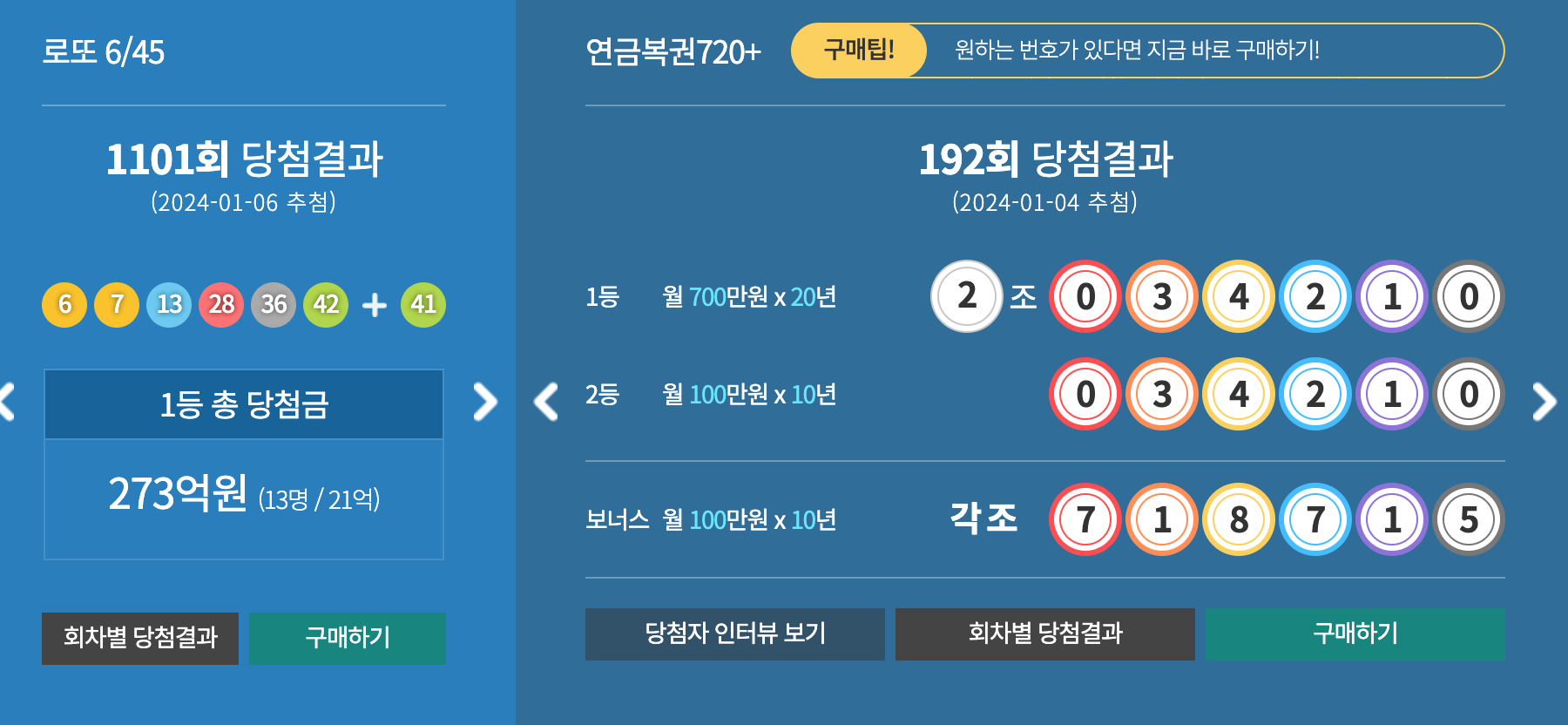 -추첨일 오후 8시부터 다음날 오전 6시까지는 판매가 정지됩니다.